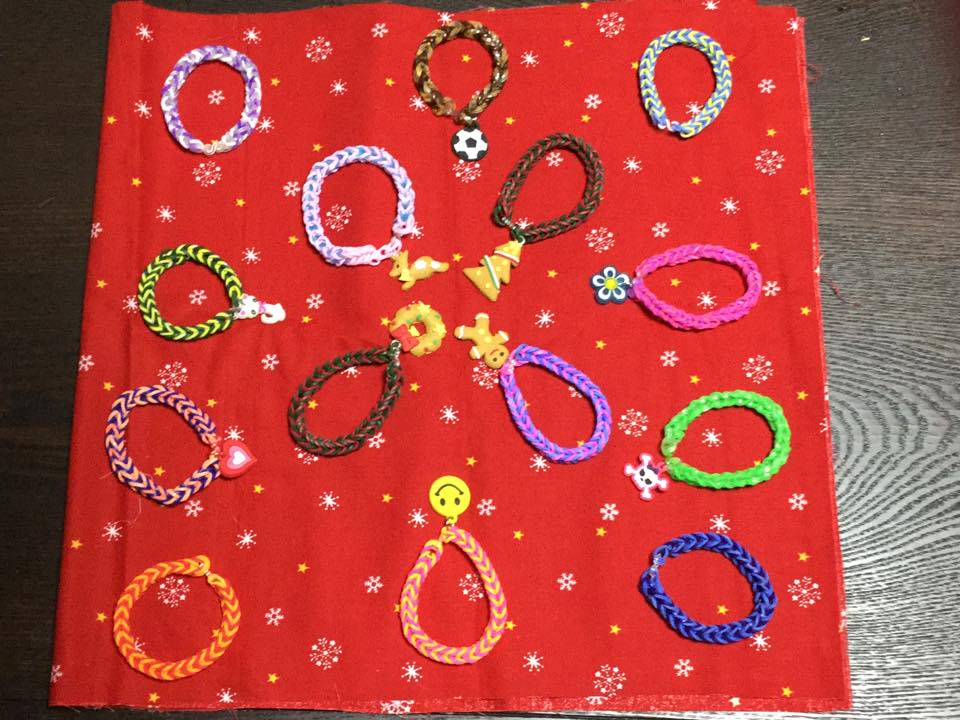 カラフルな小さい輪ゴムで自分だけのリストバンドを作っちゃおう!子どもたちの間で大人気のアイテムを作るチャンスです。今回はクリスマスということで手作りオーナメント、そしてルームネームプレートもご用意しました。自分らしく!そしてお友達にプレゼントしてもいいと思います。一緒に楽しく作りましょう☆