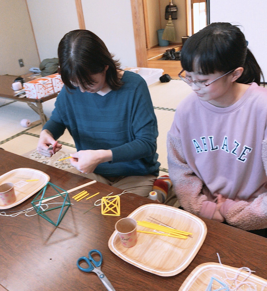 ヒンメリとは、北欧に伝わる豊穣や発展を祈って作られる正八面体の飾りです。スウェーデン語でヒンメリとは「天、空」を意味するそう。地球学校はじまりの日に、これからの地球学校の発展を祈ってみんなでヒンメリを紡ぐ。こころねらしい素敵な時間になりました。