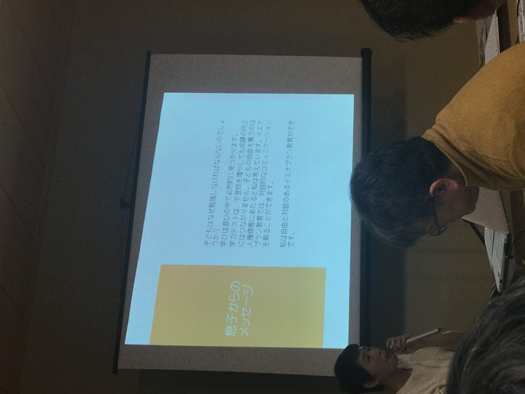講師は息子さんがイエナのフリースクールに通い、去年はオランダでイエナスクールを視察されてきたという漆原幸子さんにお願いしました。