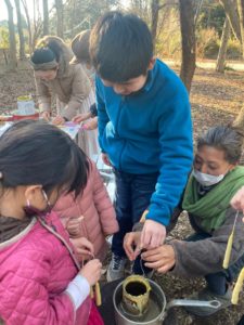 ☆森の中では聖子先生の「蜜蝋キャンドルづくり」。
