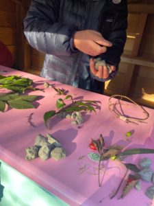 カリフォルニアのアイスクリームやさんのような屋台小屋では、森の木の実や葉っぱが売られた自然やさんがオープン。小石のお金を払うのですが、キャッシュバックシステムがあって、たくさん買えました