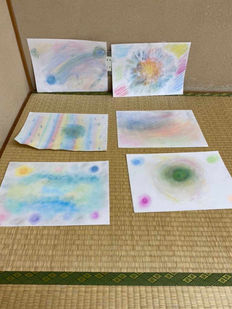 のんびりと大きな紙にお絵描きしたり、パステルアートしたりでした。